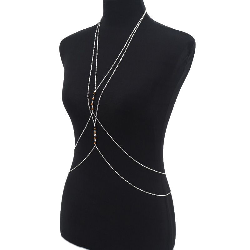 Multilayer Sexy Silver Beach Bikini Alloy Beaded Crossover Beyonce Body Chain Necklace