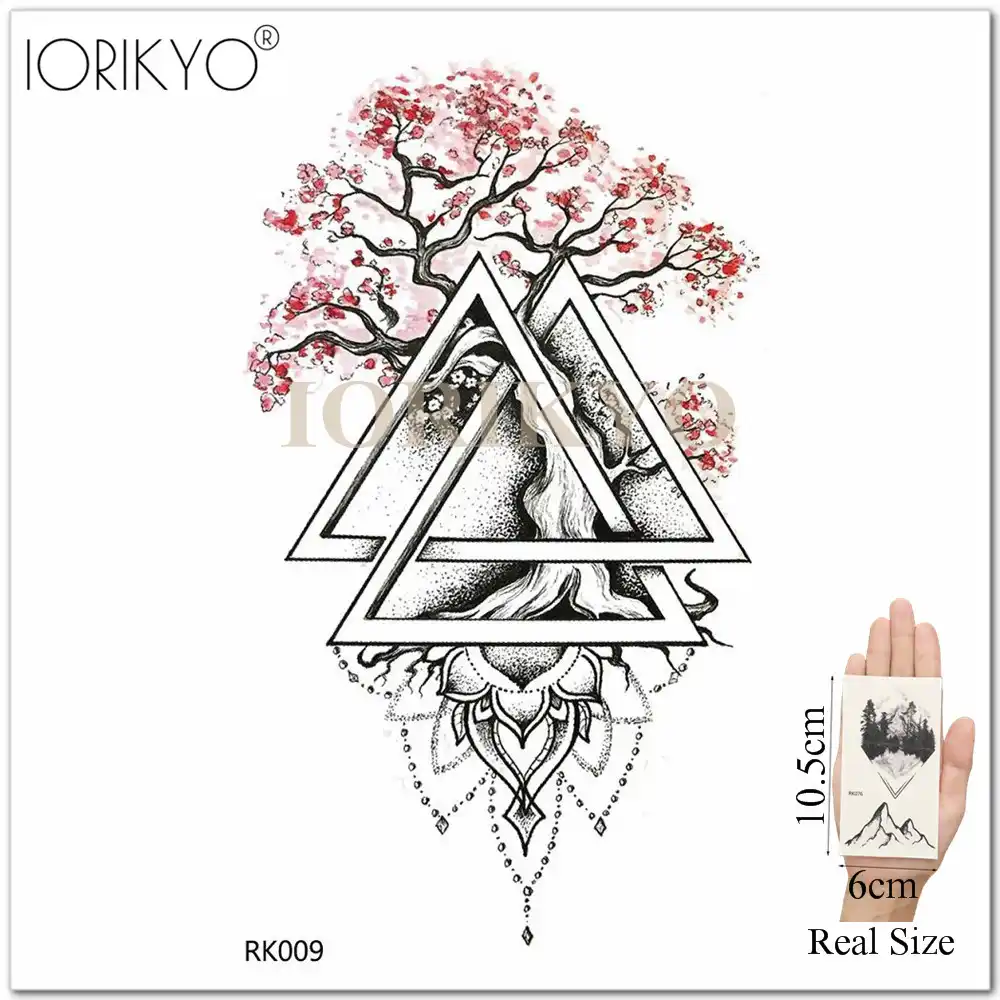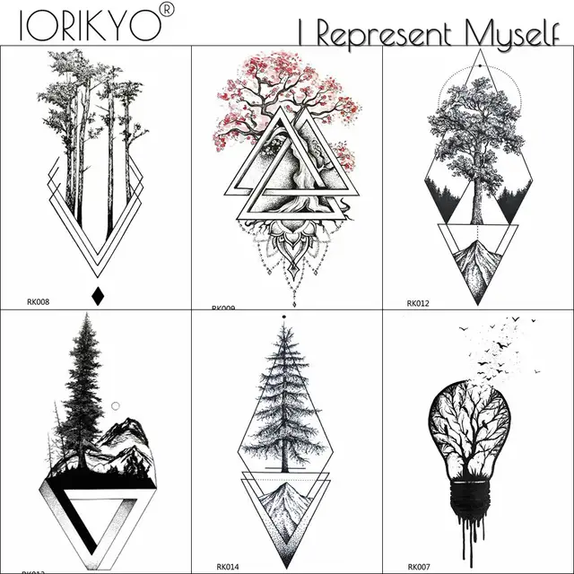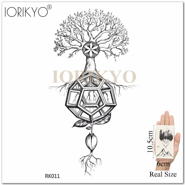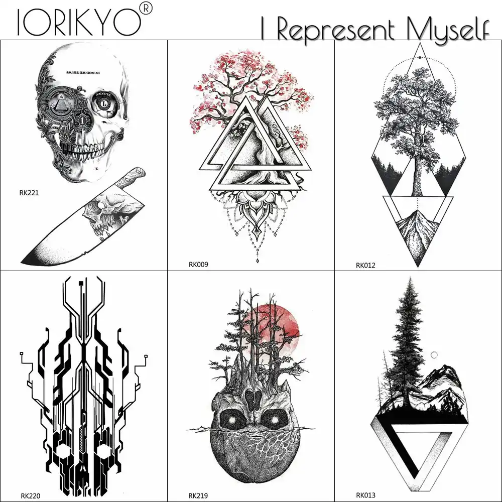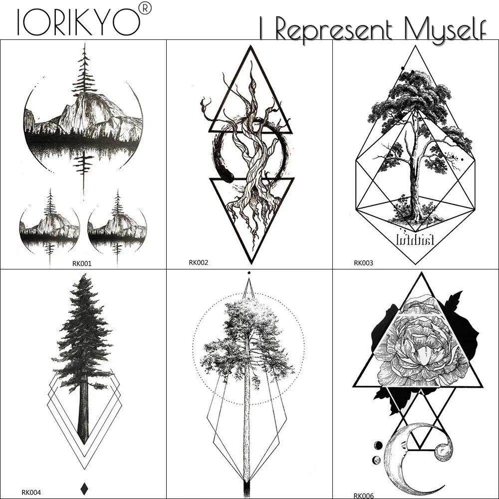 Iorikyo Black Geometric Old Pine Tree Temporary Tattoo Women Arm Stickers Men Fashion Waterproof Tatoos Forest Tattoo Decals