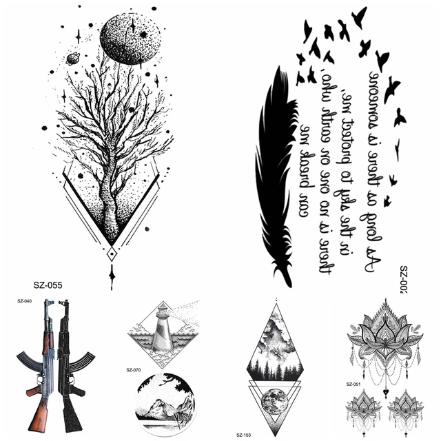 Us 0 39 10 Off Geometric Planet Moon Tree Tattoo Stickers Women Arm Feather Birds Temporary Tattoo Men Forearm Waterproof Tatoos Paste In Temporary