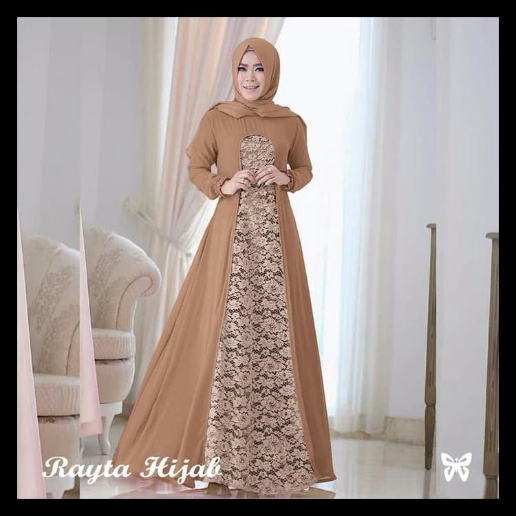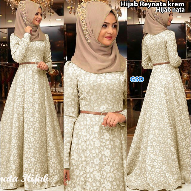 Hijab Reynata Krem Terusan Dress Gamis Hijab Long Maxi Dress Hijab