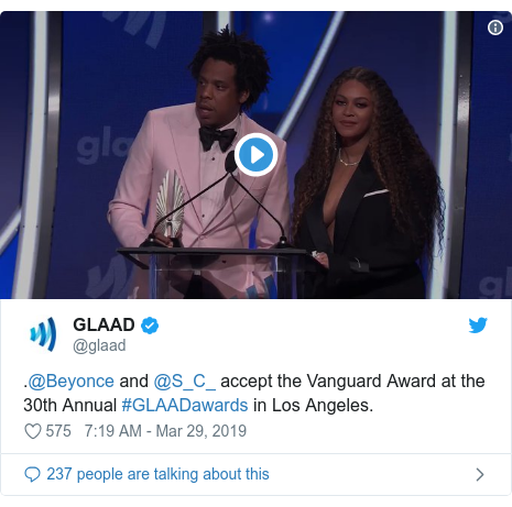 Beyonce And Jay Z Accept Vanguard Award At 2019 Glaad Awards