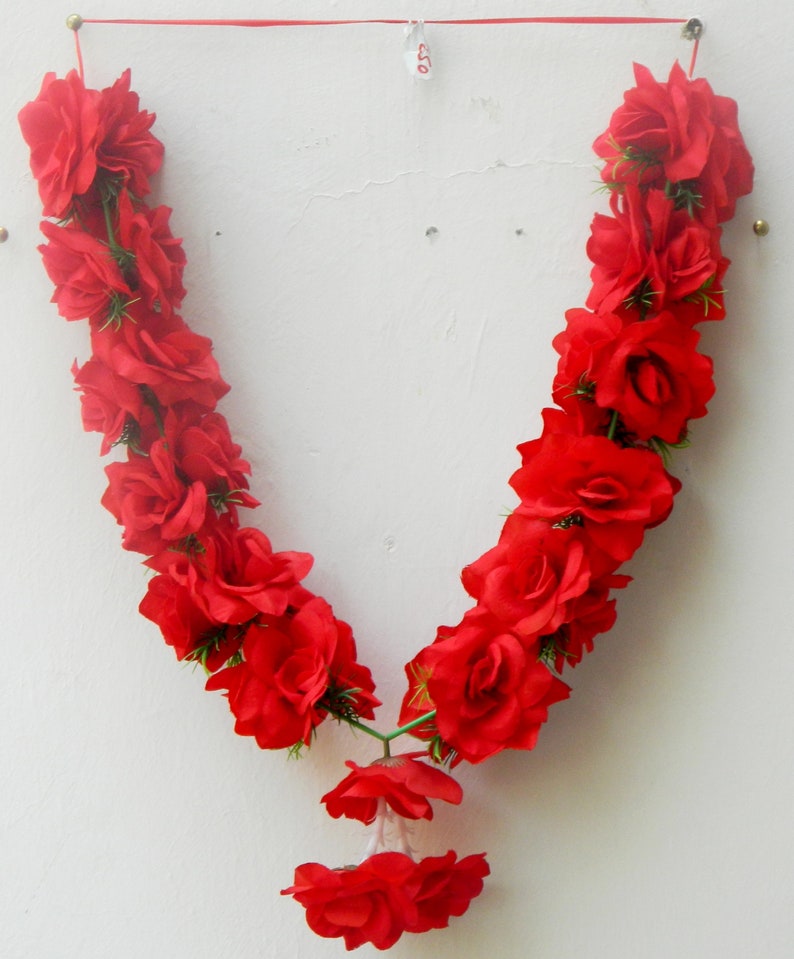 Heavy Red Roses Artificial Indian Wedding Garland Milni Mala Barati Welcome Mala Statue Photo Garland Idol Garland Indian Home Decoration