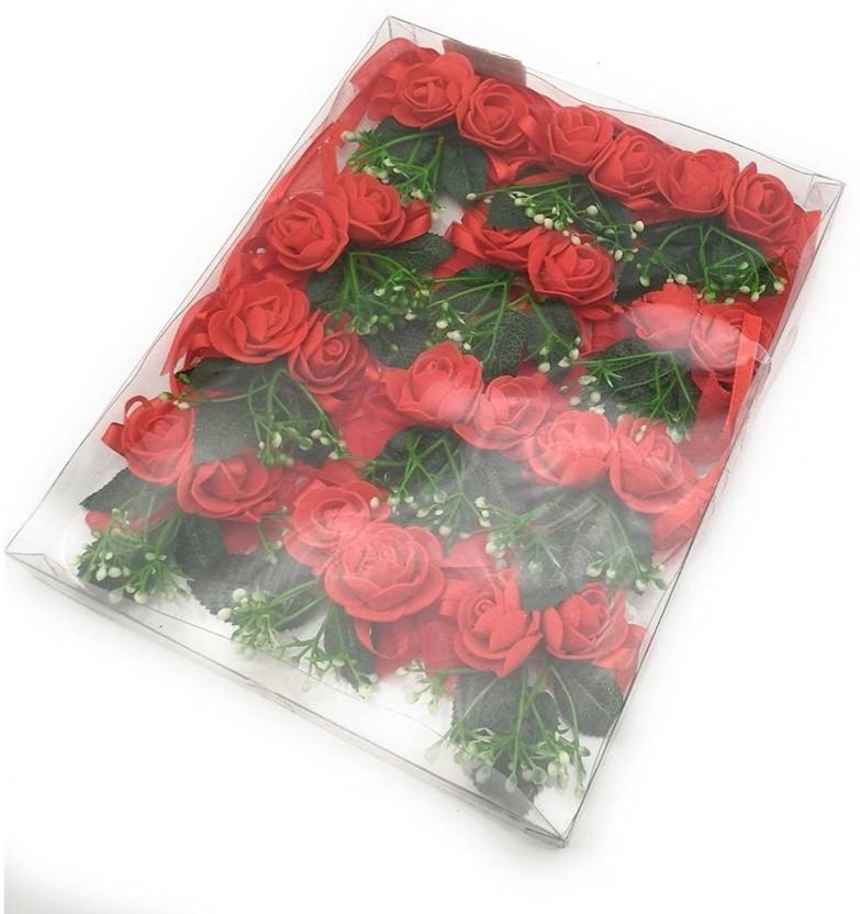 Satyam Kraft Colourful Artificial Foam Rose Flower With Leaf Lace Decorative Flower 12 Bunch Flower Red Rose Artificial Flower