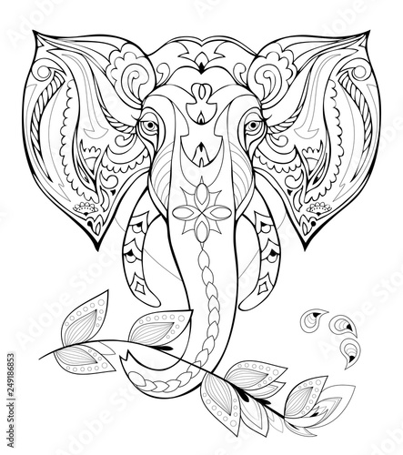 Elephant Head Adult Antistress Coloring Page Black White Hand