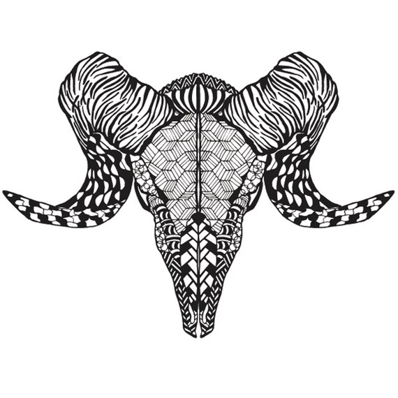 Black And White Patterned Horned Elephant Head Tattoo Design
