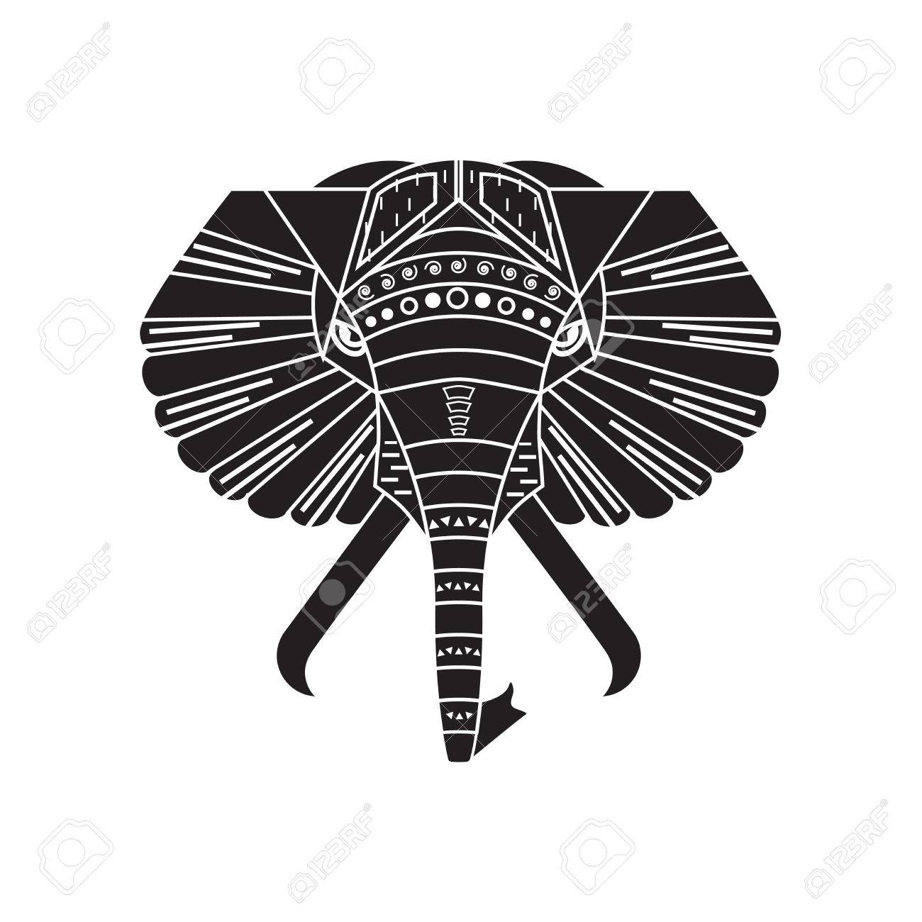 Vector Illustration Of An Elephant Head Tribal Tattoo Stock