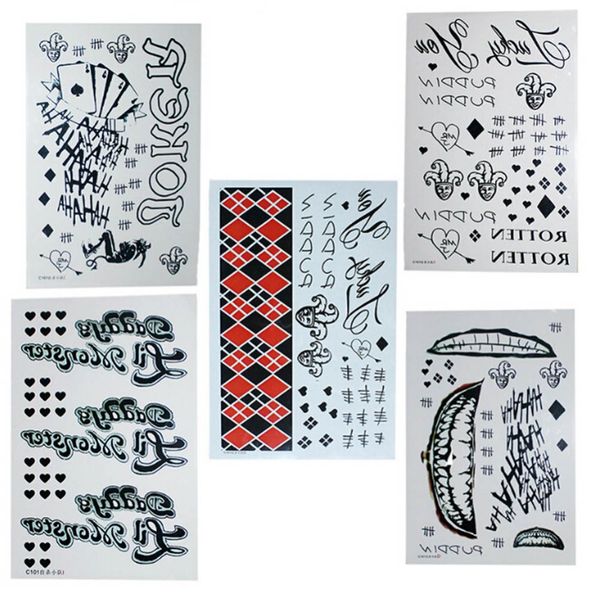 New Women Men Fashion Halloween The Joker Harley Quinn Temporary Tattoos Suicide Squad Costume Fancy Dress Tattoo Stickers 5 Styles
