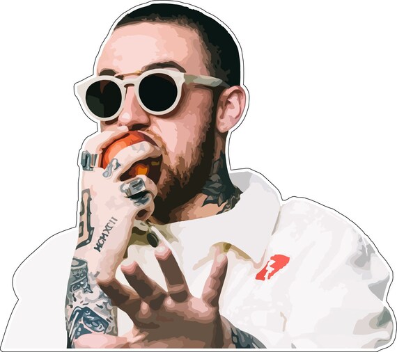 Mac Miller Eating Apple Rapper Larry Fisherman Tattoo High Quality Vinyl Sticker